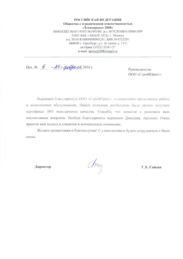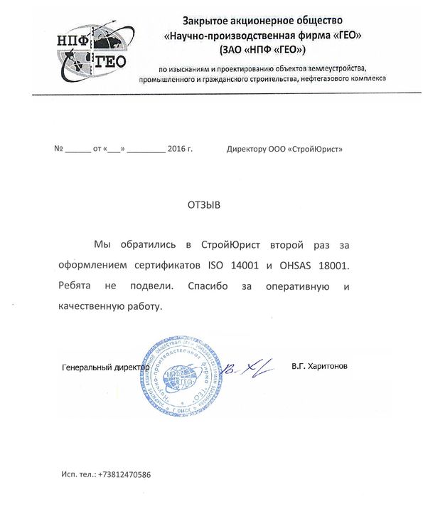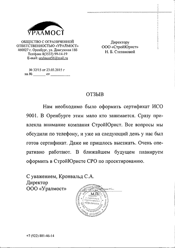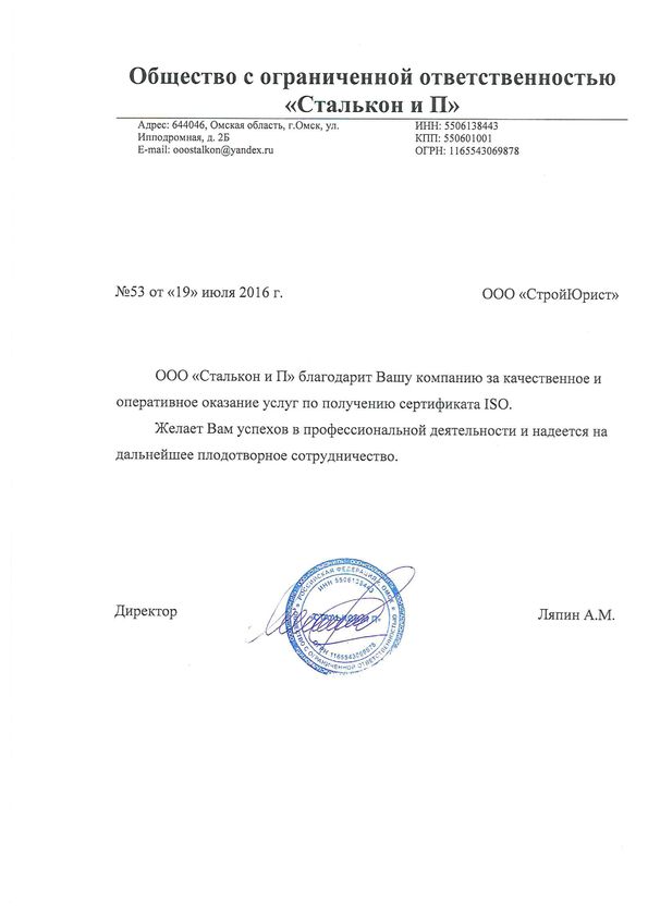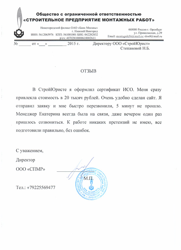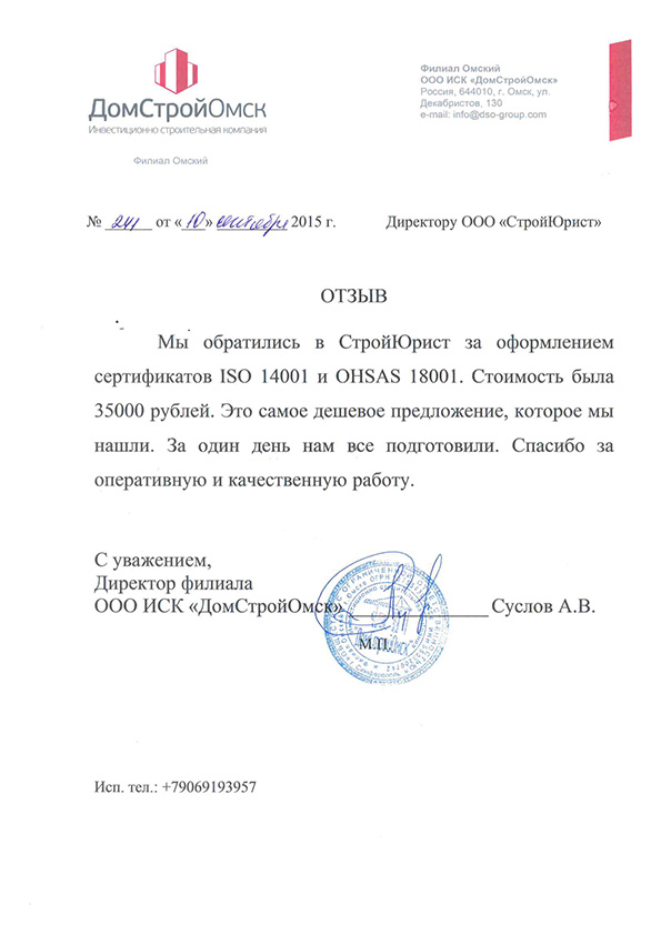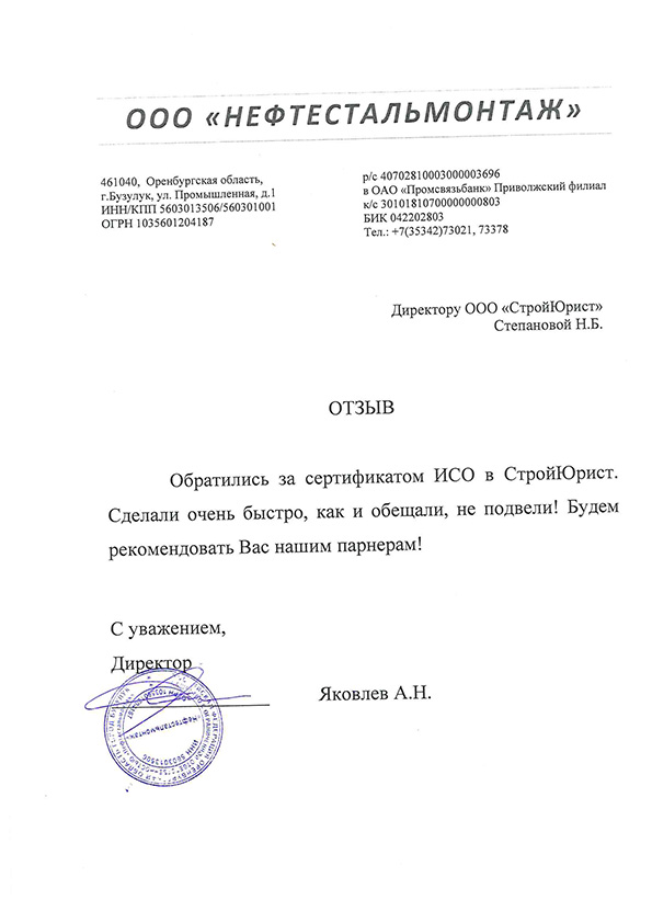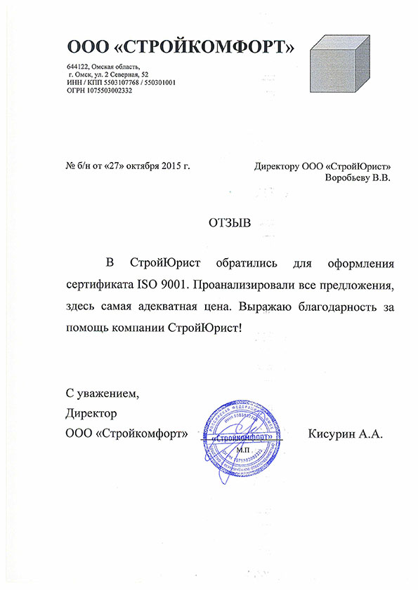 Отзывы клиентов "СтройЮрист" по ISO в Череповце