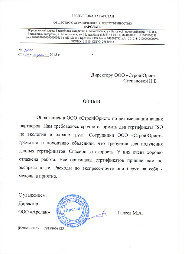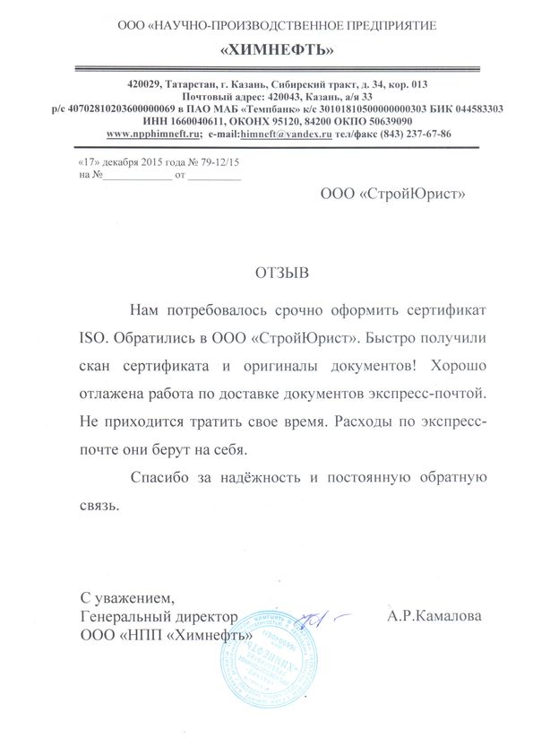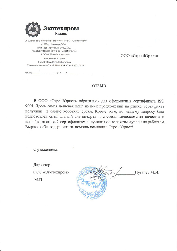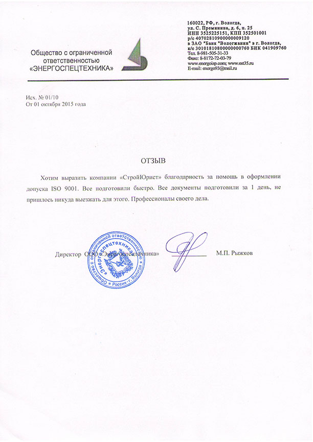 Отзывы клиентов "СтройЮрист" по ISO в Череповце