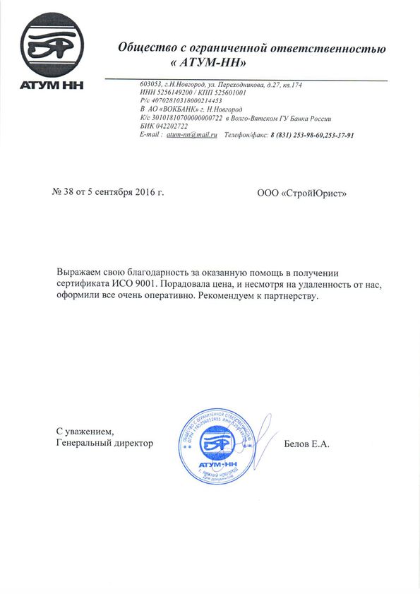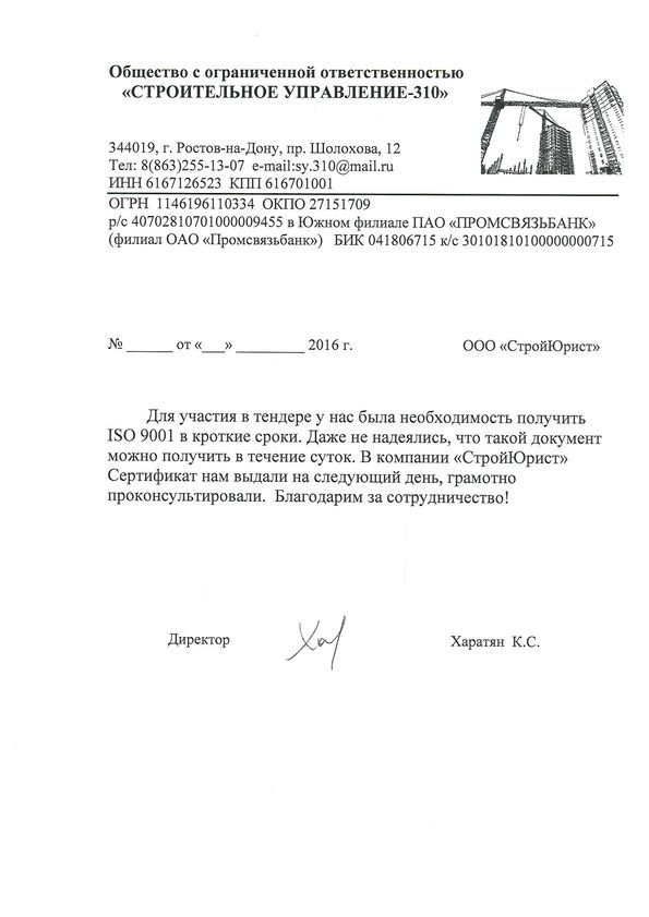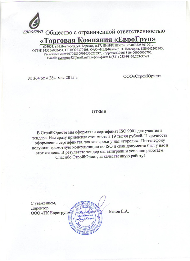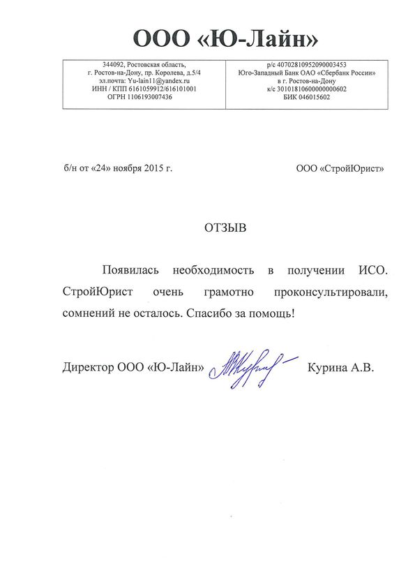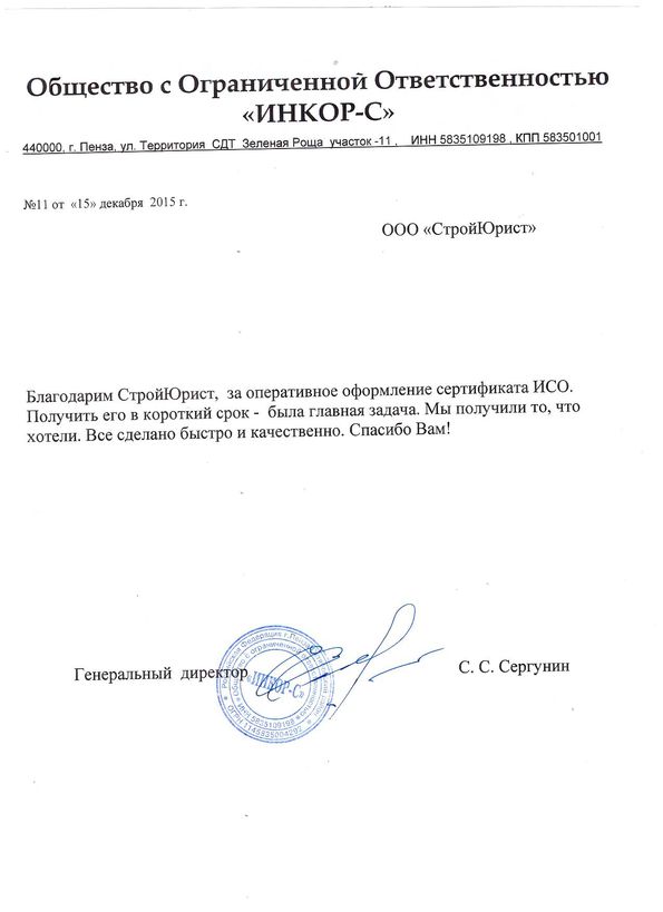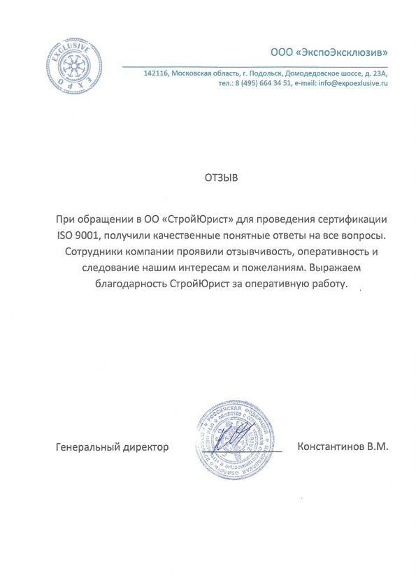 Отзывы клиентов "СтройЮрист" по ISO в Череповце
