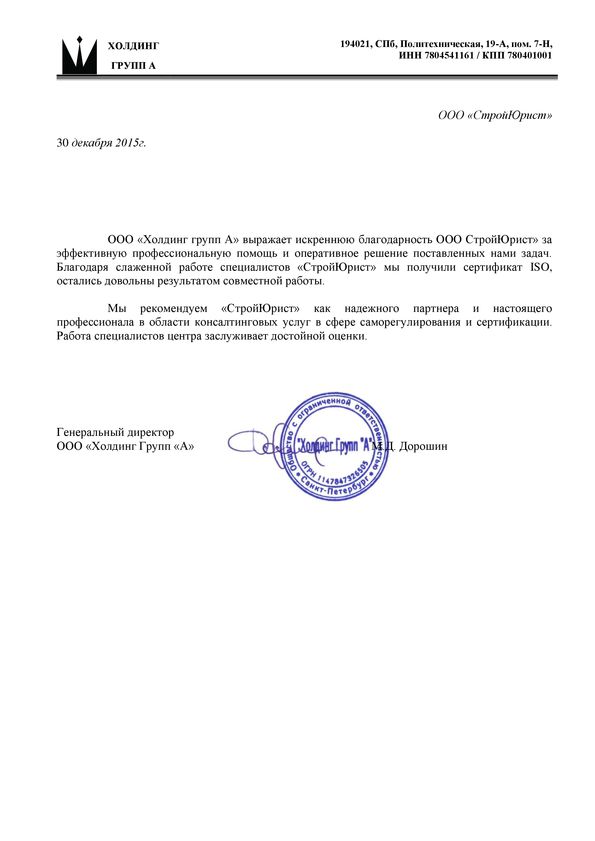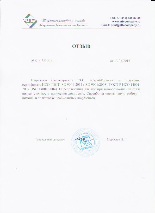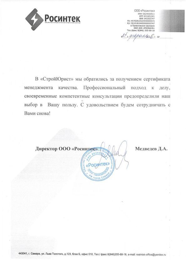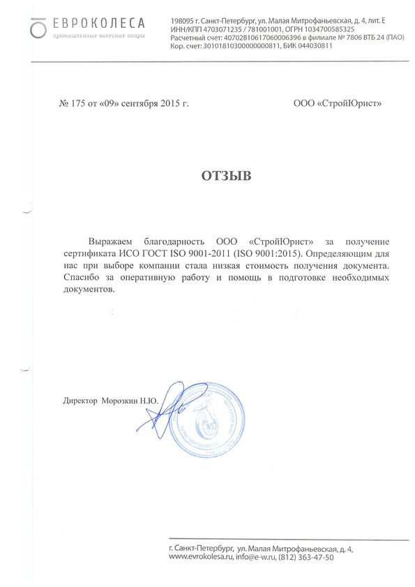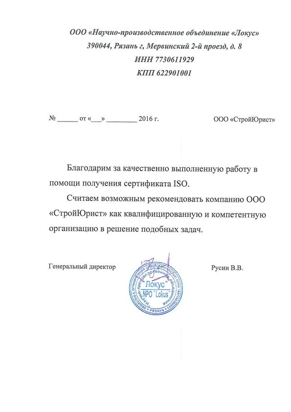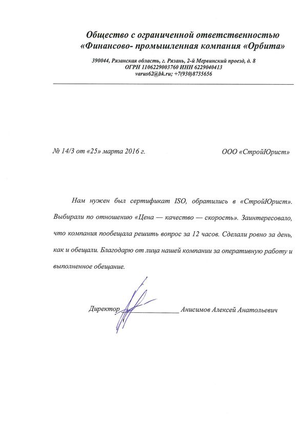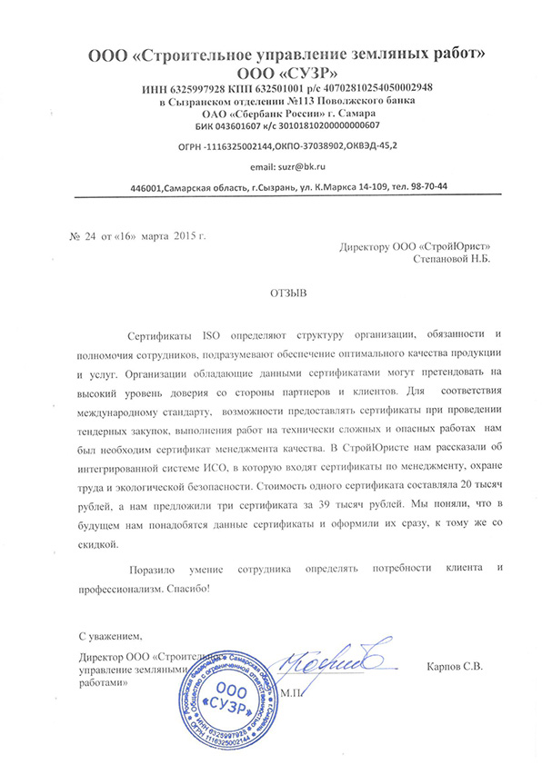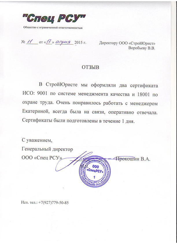Отзывы клиентов "СтройЮрист" по ISO в Череповце