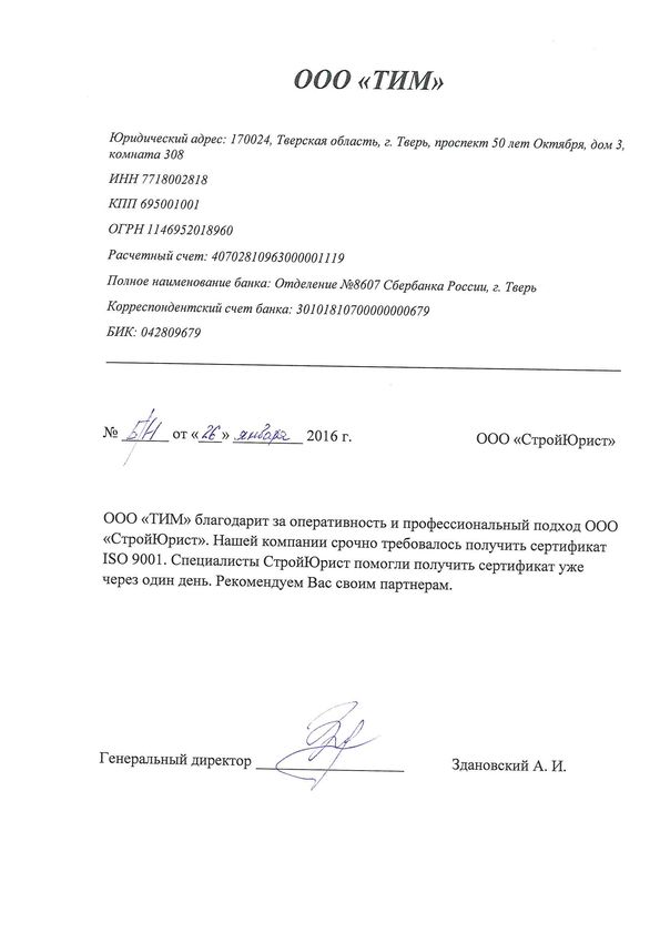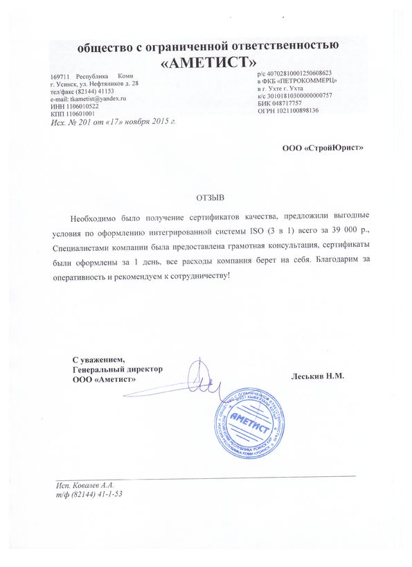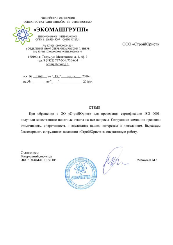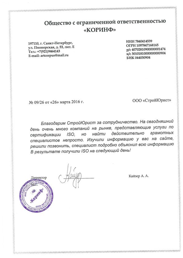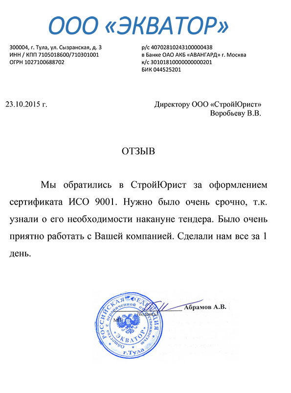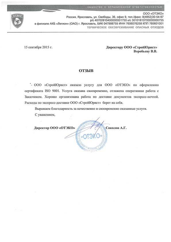 Отзывы клиентов "СтройЮрист" по ISO в Череповце