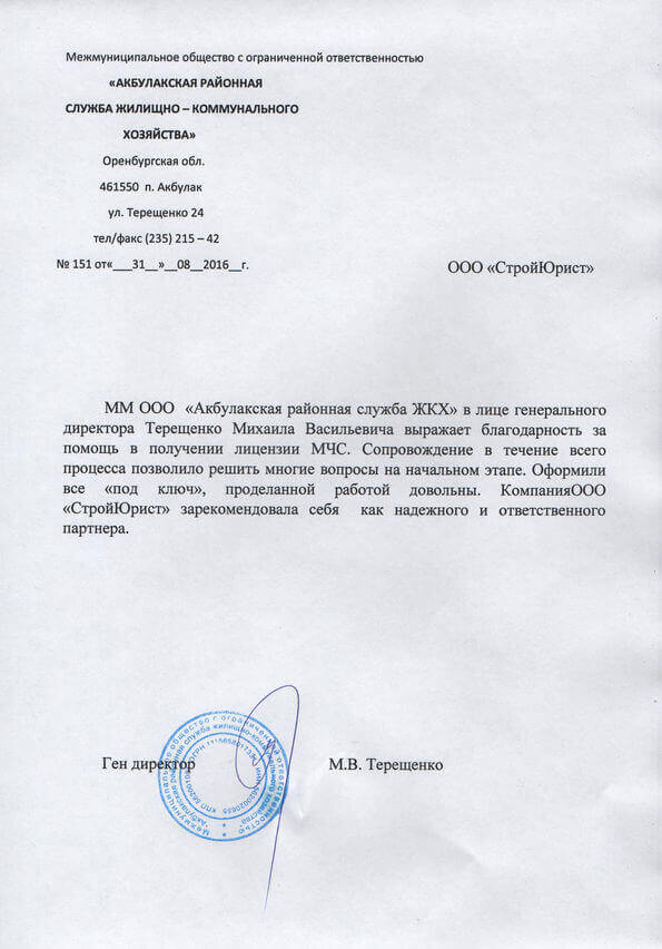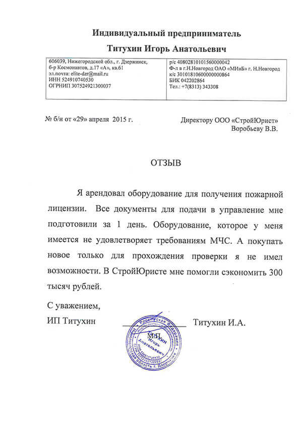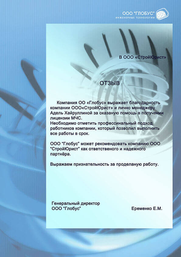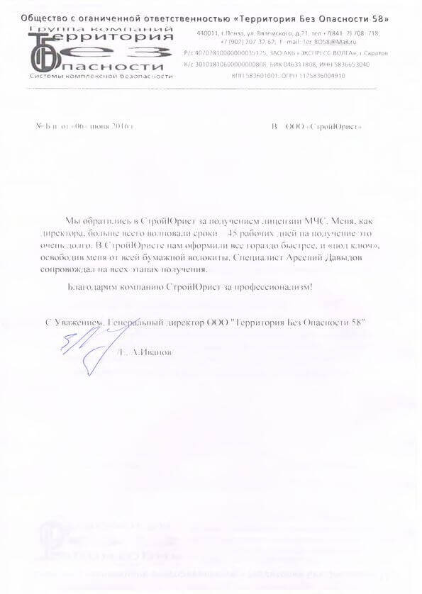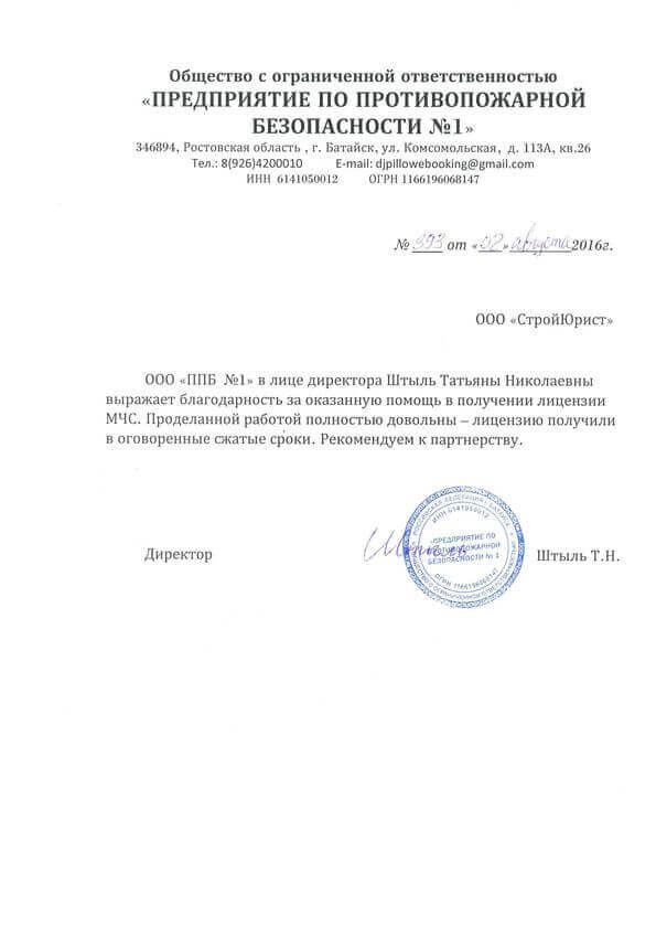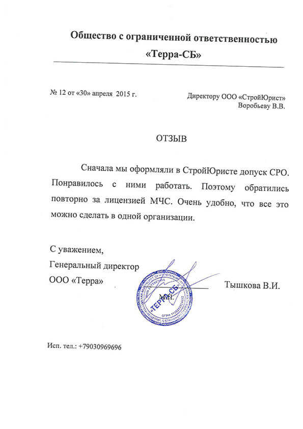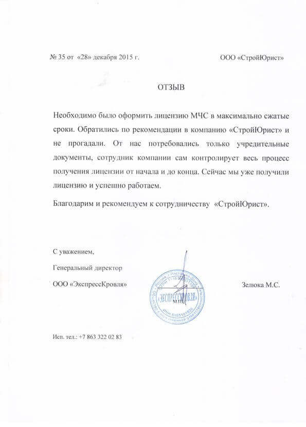 Отзывы клиентов "СтройЮрист" по лицензированию МЧС в Череповце