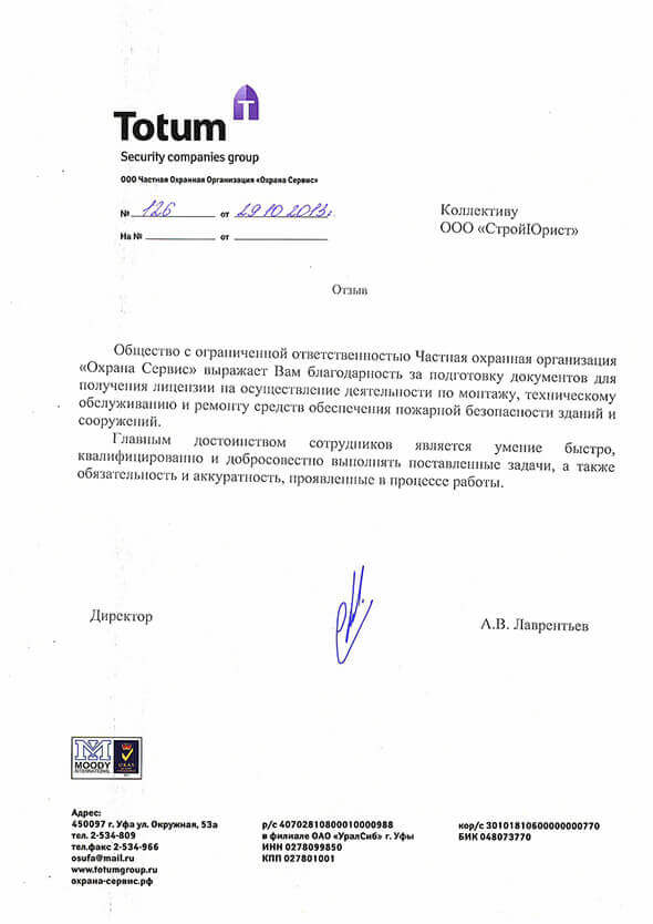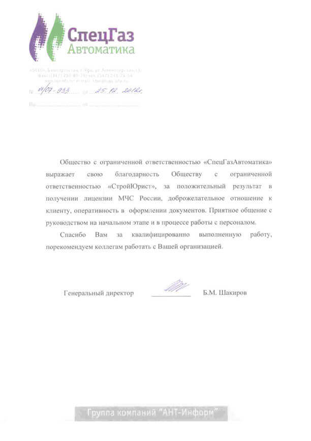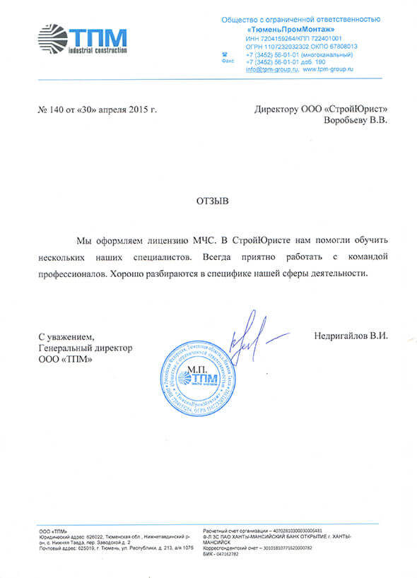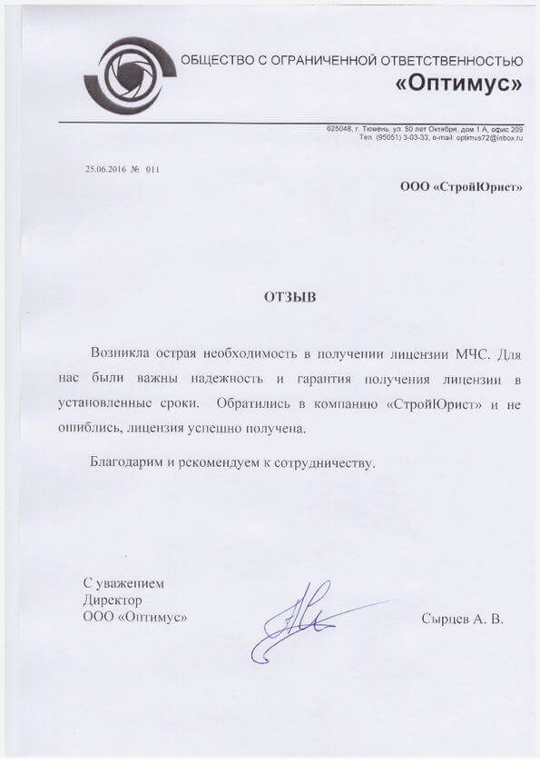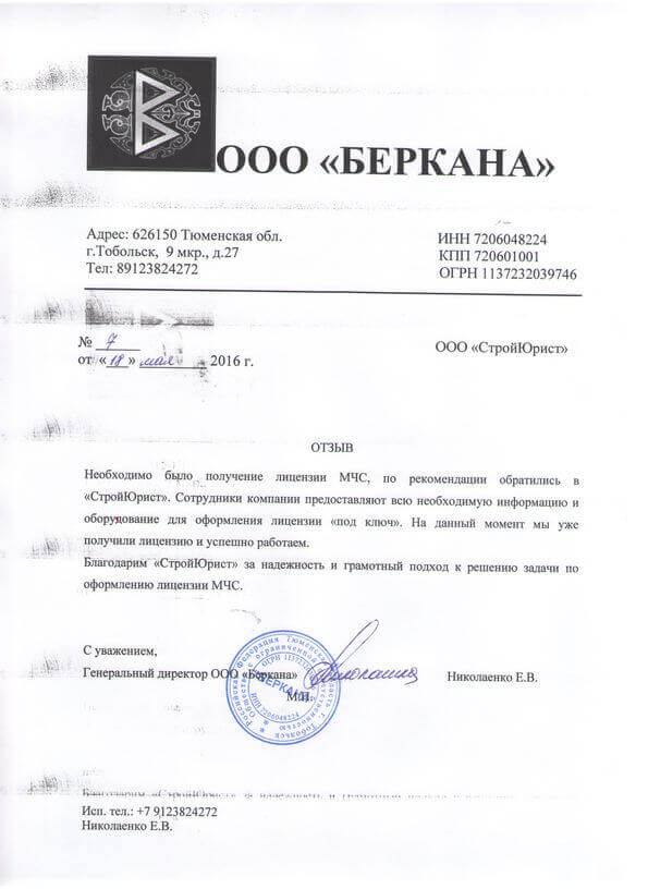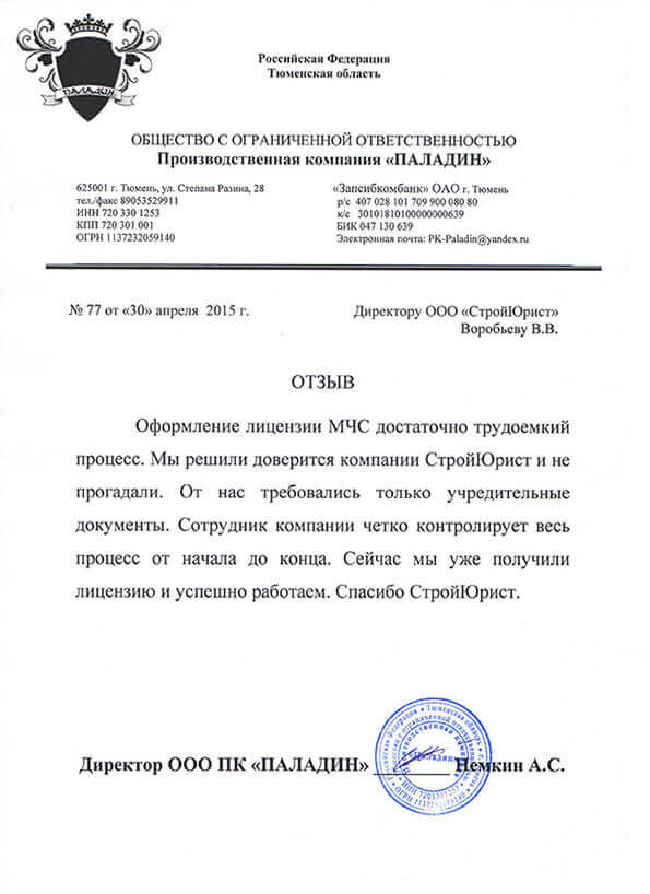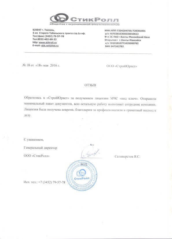 Отзывы клиентов "СтройЮрист" по лицензированию МЧС в Череповце
