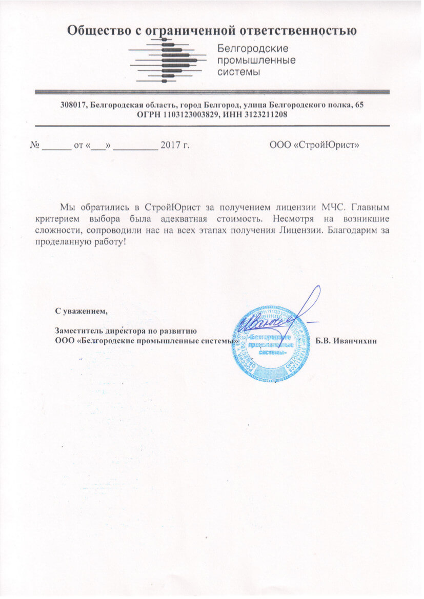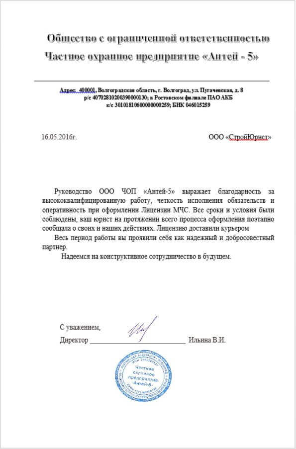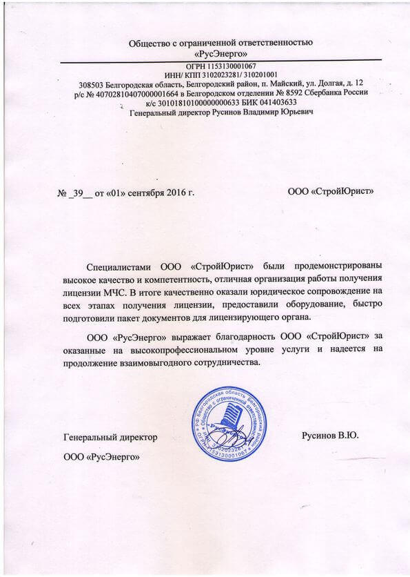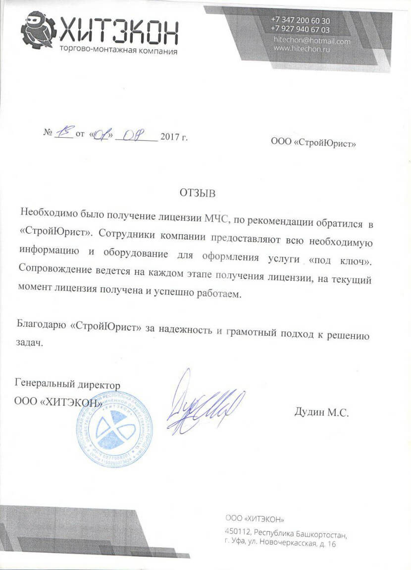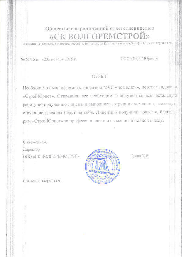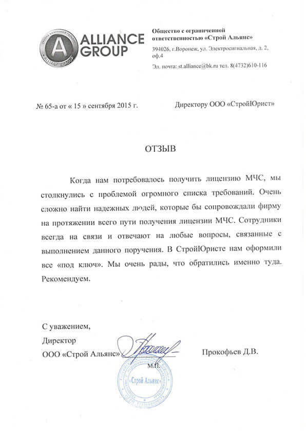 Отзывы клиентов "СтройЮрист" по лицензированию МЧС в Череповце