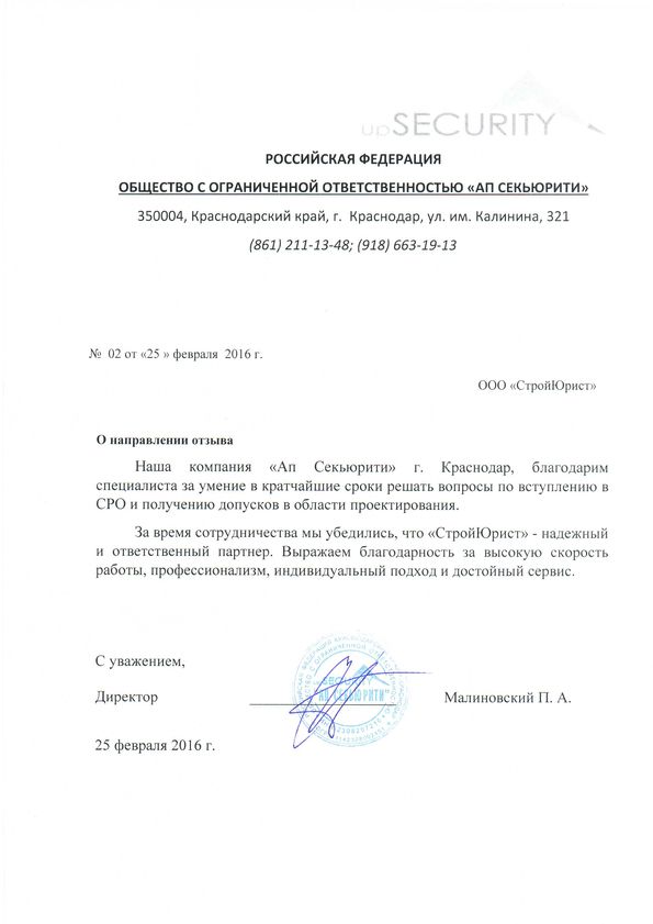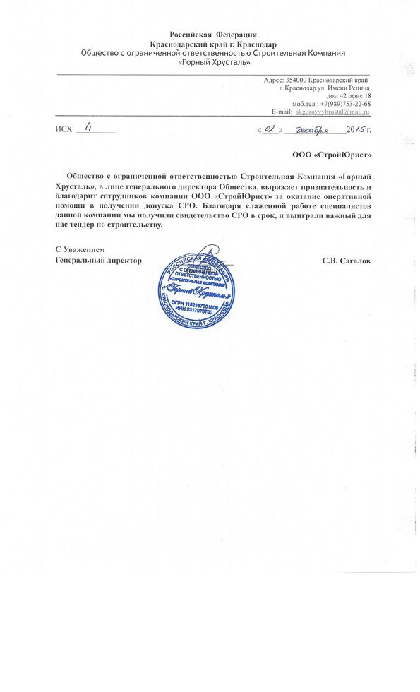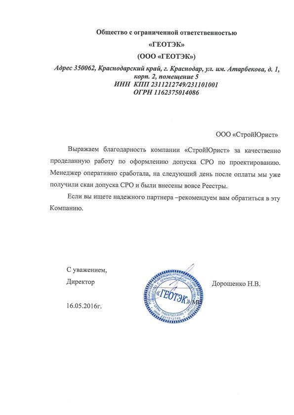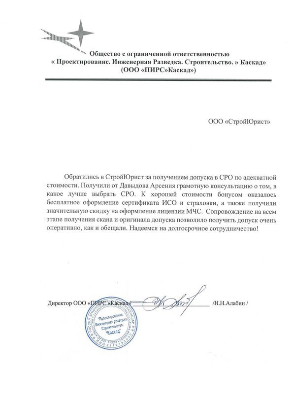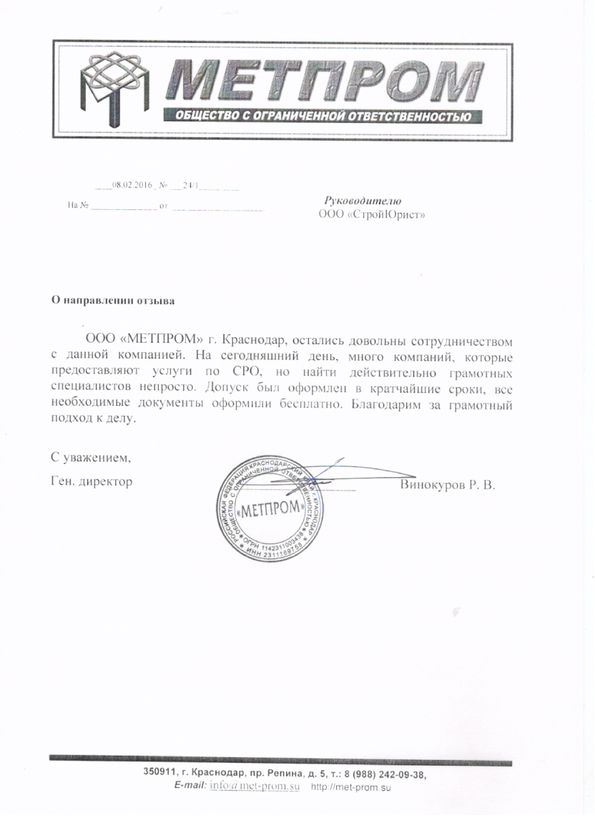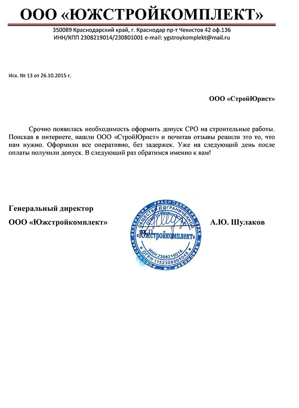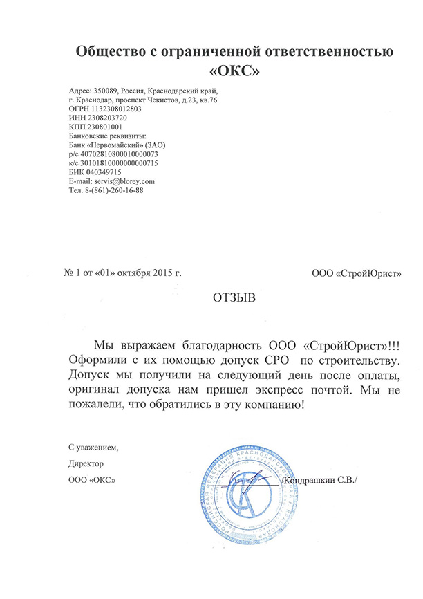 Отзывы клиентов "СтройЮрист" по вступлению в СРО в Череповце