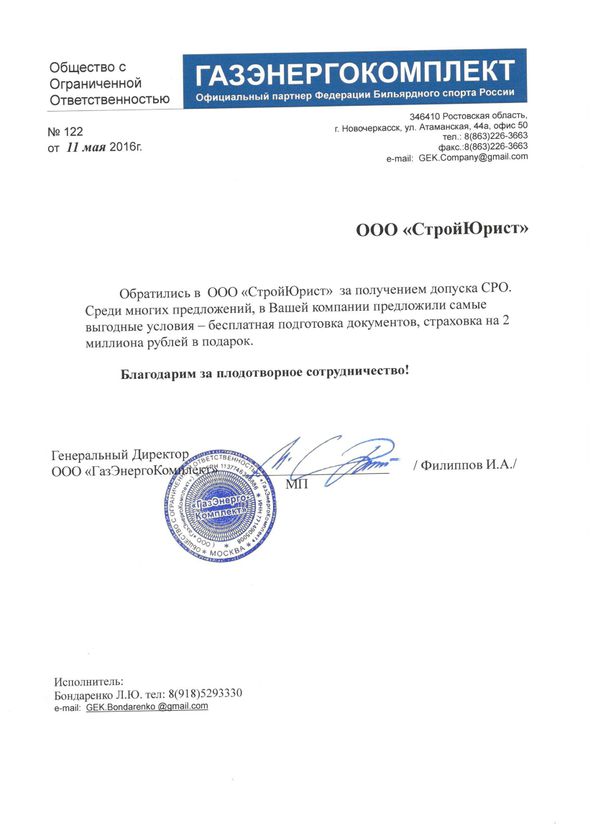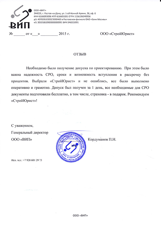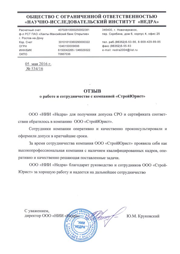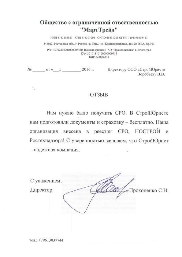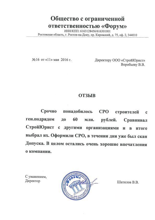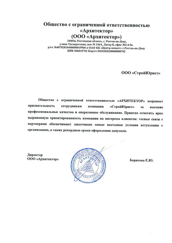 Отзывы клиентов "СтройЮрист" по вступлению в СРО в Череповце