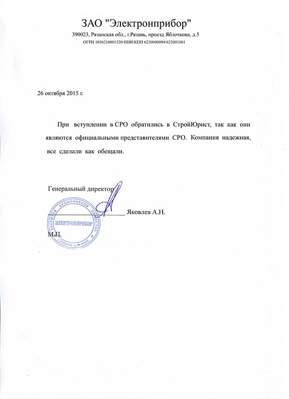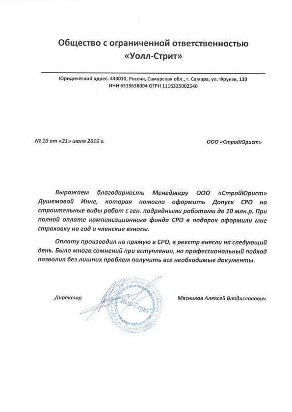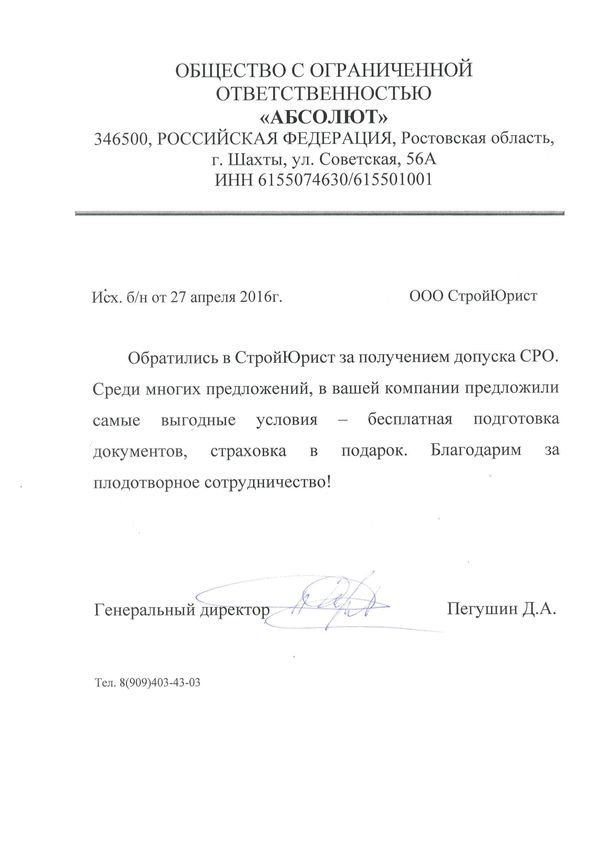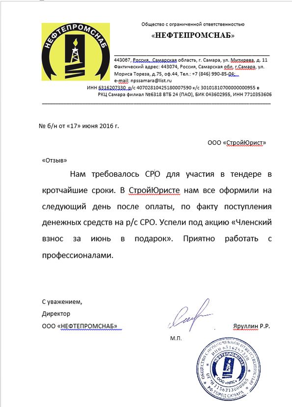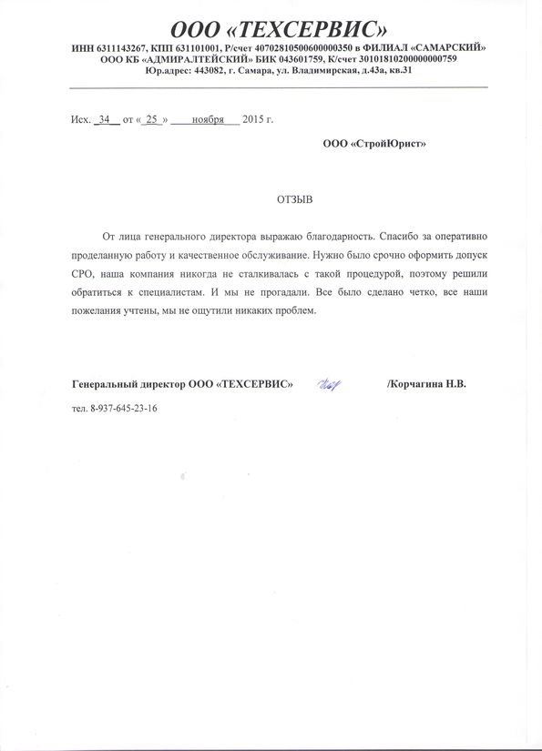 Отзывы клиентов "СтройЮрист" по вступлению в СРО в Череповце