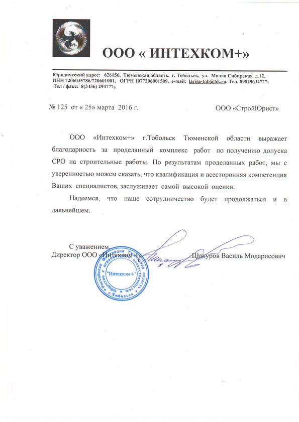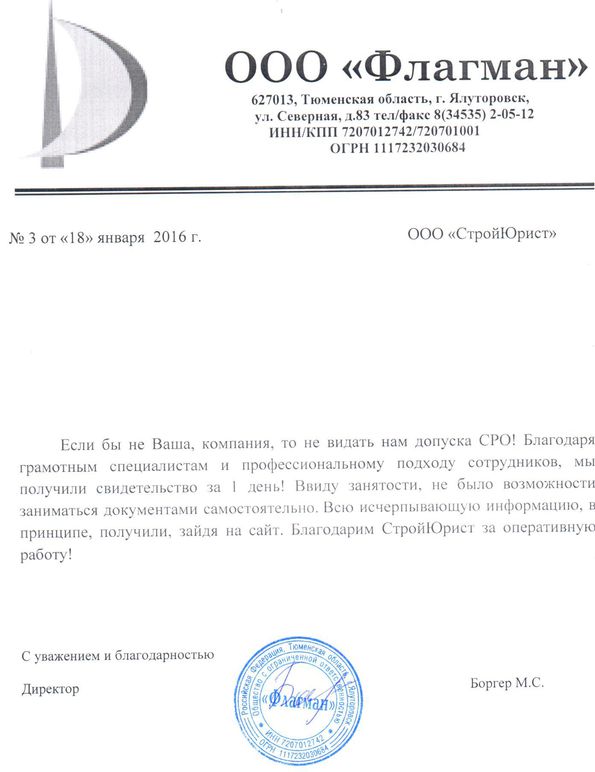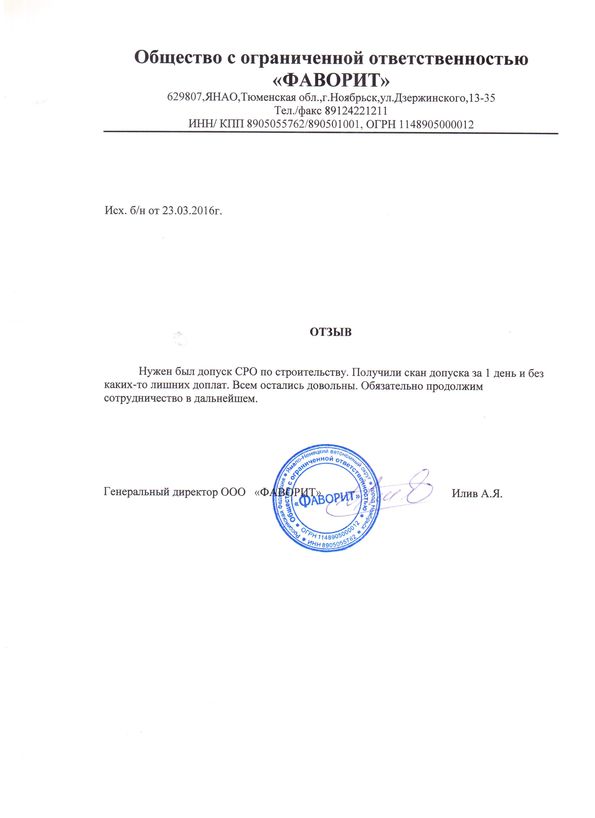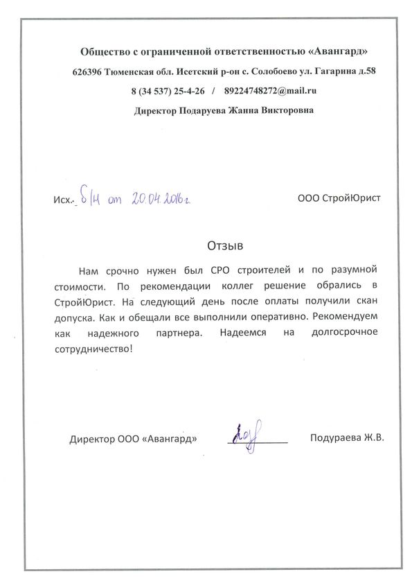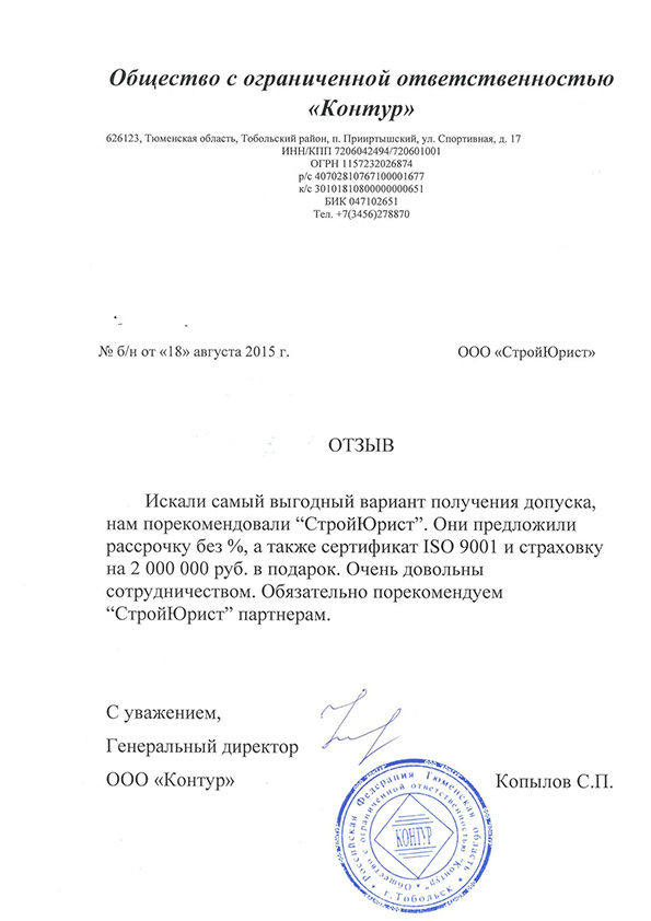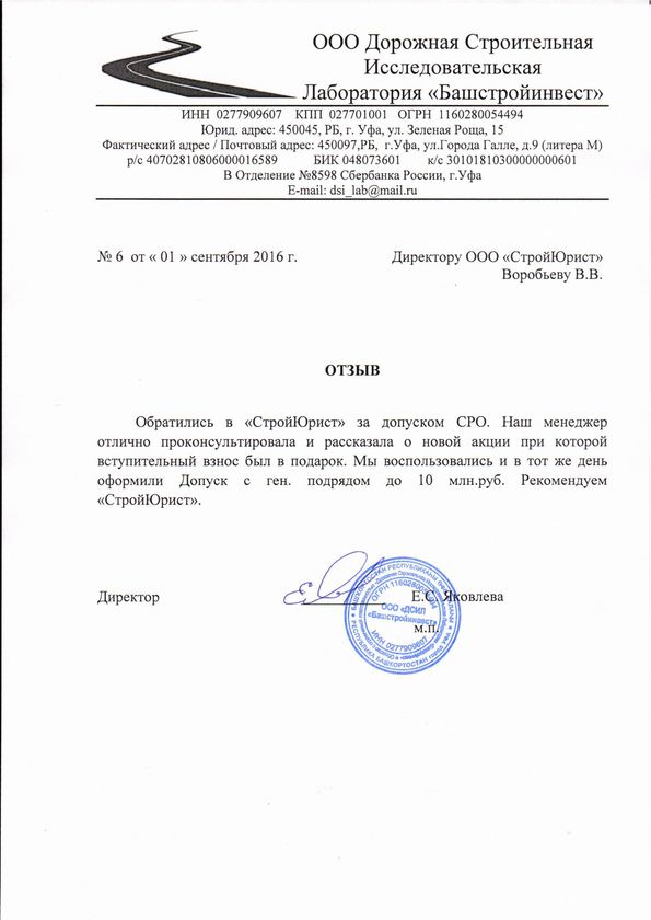 Отзывы клиентов "СтройЮрист" по вступлению в СРО в Череповце