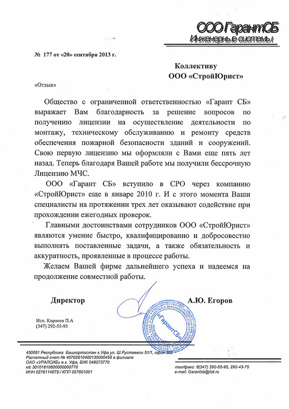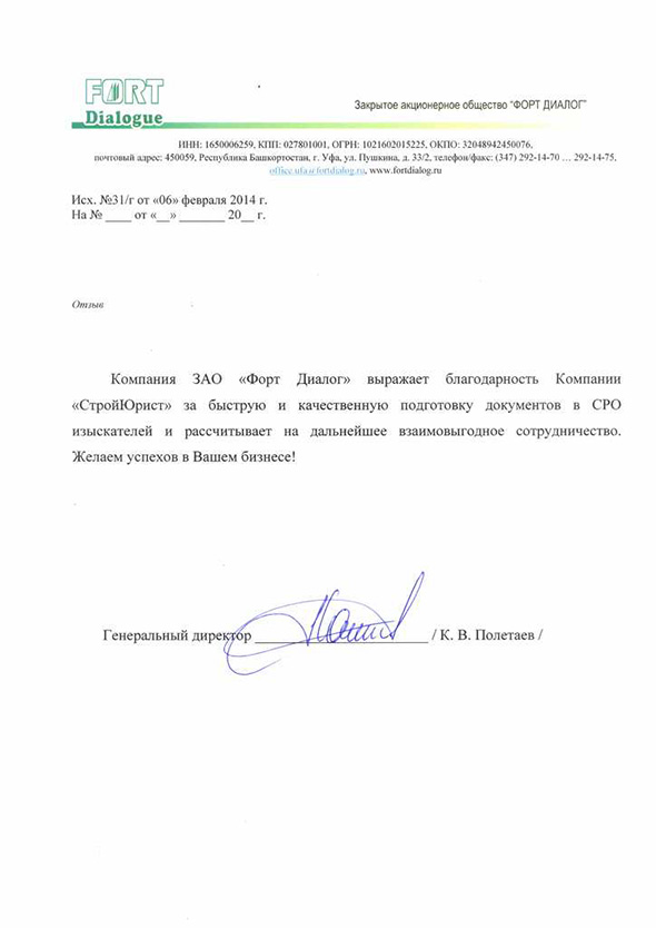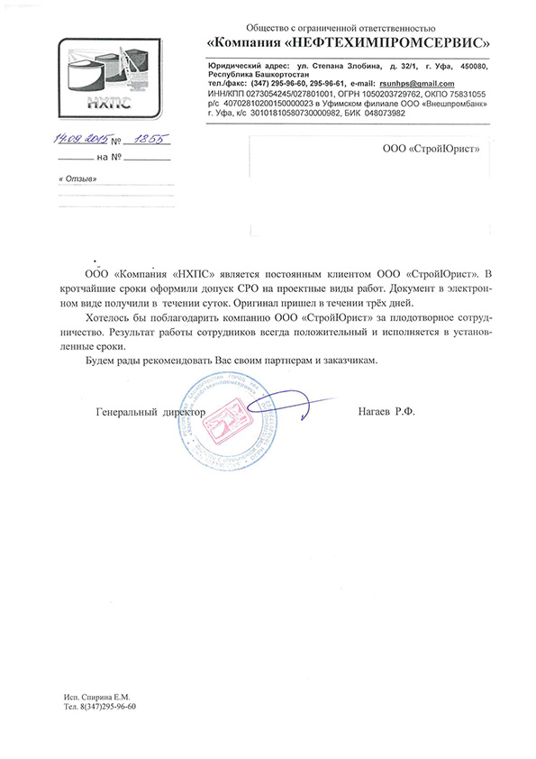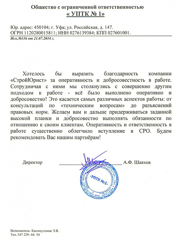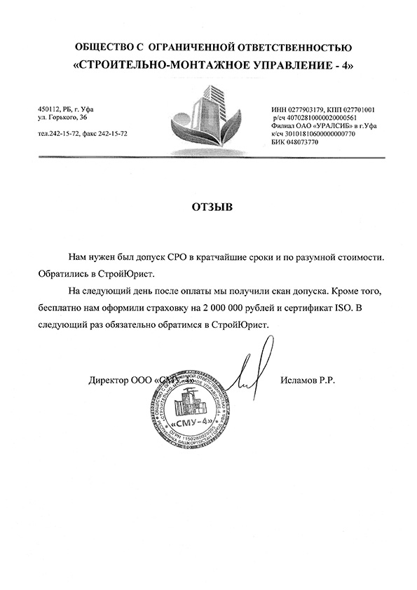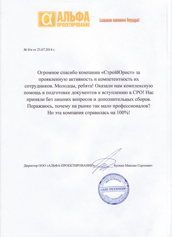 Отзывы клиентов "СтройЮрист" по вступлению в СРО в Череповце