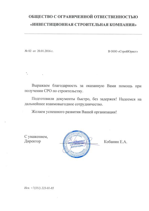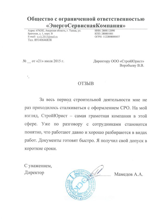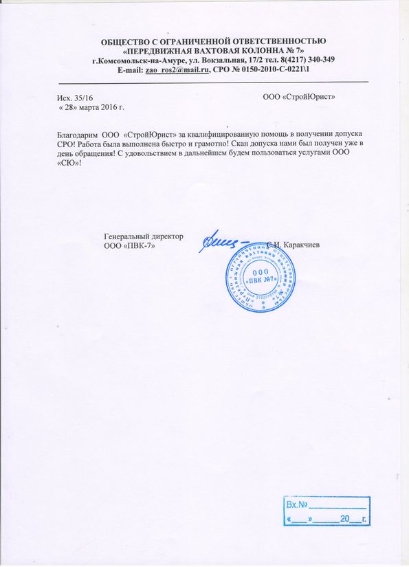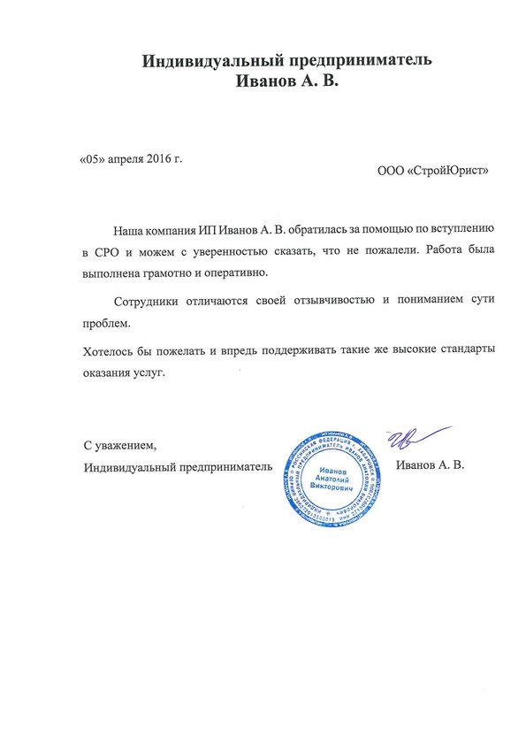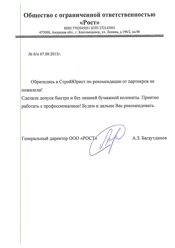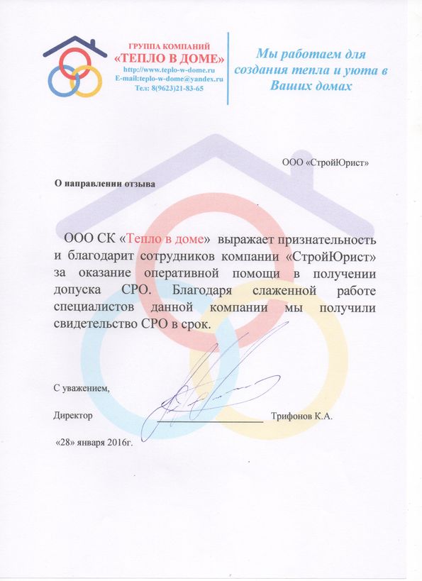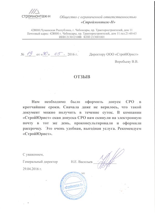 Отзывы клиентов "СтройЮрист" по вступлению в СРО в Череповце